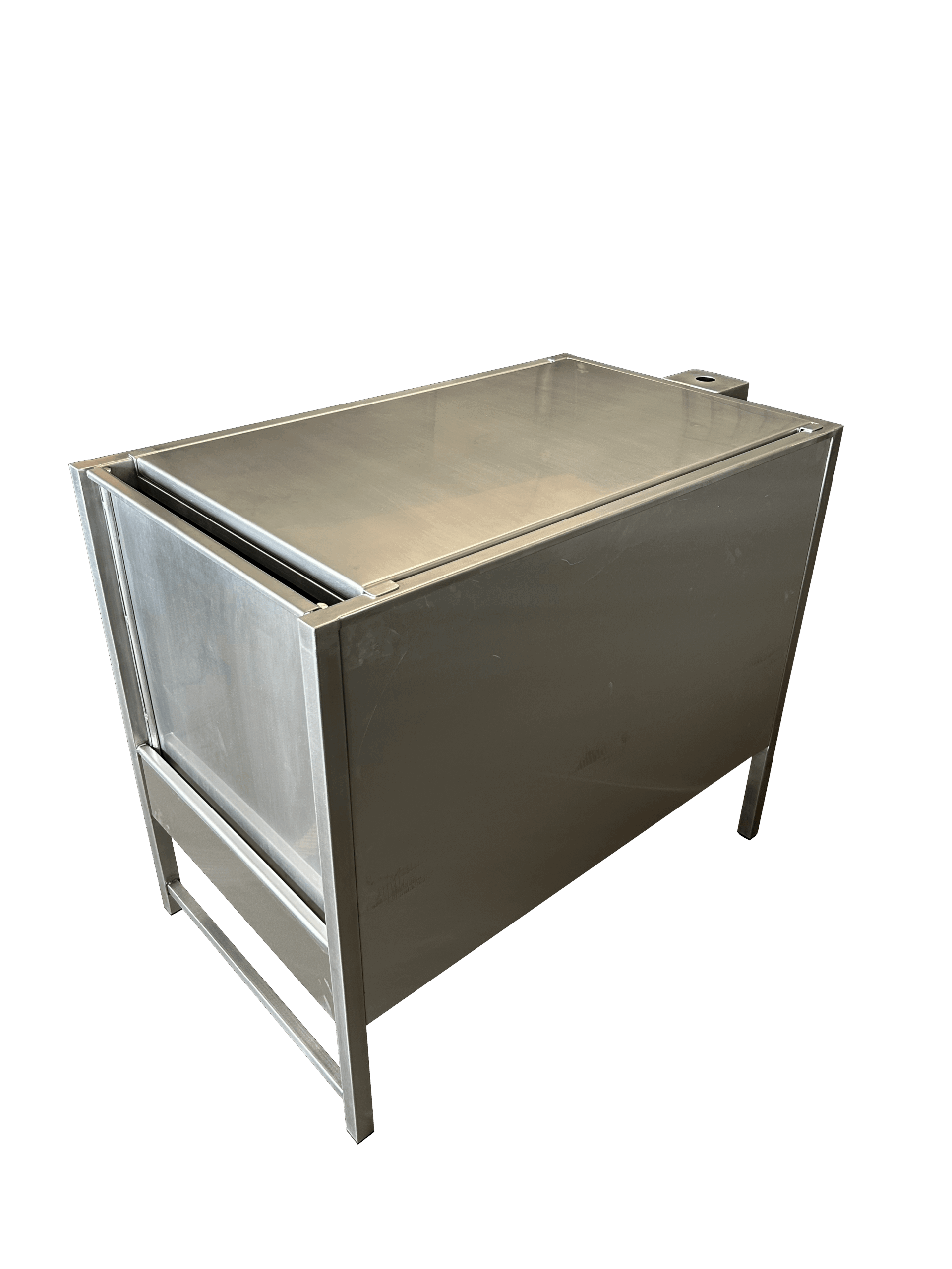 - lub Komora o głębokości 450 mm (średnie psy) z odpływem z dzielonym blatem wykonanym z blachy perforowanej.
